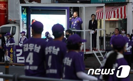 (제주=뉴스1) 고동명 기자 = 더불어민주당 탈당한 김우남 무소속 제주을 국회의원 후보가 30일 오후 제주시청에서 총력유세를 갖고 지지자들에게 표심을 호소하고 있다. 2022.5.30/뉴스1