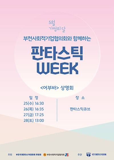 부천국제판타스틱영화제(BIFAN) 제16대 후원회(회장 신경학)는 부천사회적기업협의회(회장 김승모)와 함께 개최한 ‘판타스틱WEEK’를 성료했다고 전했다. 지난 25일부터 4일간 부천 지역 어르신·어린이를 위해 가진 영화 <어부바> 무료 상영회를 성황리에 마쳤다.