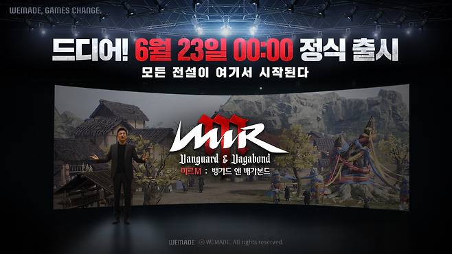 ㈜위메이드(대표 장현국)는 자사의 대작 MMORPG ‘미르M: 뱅가드 앤 배가본드’(이하 ‘미르M’)가 오는 6월 23일 정식 서비스를 시작한다고 밝혔다.