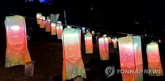 (강릉=연합뉴스) 유형재 기자 = 31일 유네스코 인류무형문화유산이자 중요무형문화재인 천년 축제 강릉단오제가 열리는 강원 강릉시 남대천 단오장 일원에 소원 단오등이 걸려 있다. 2022.5.31