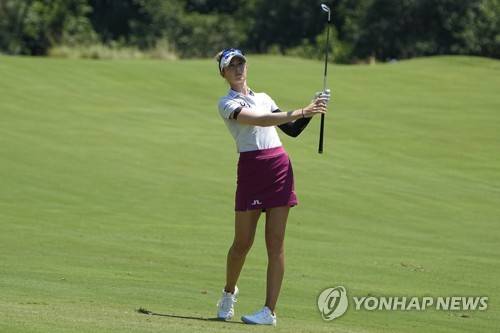Nelly Korda watches her shot from the 18th fairway during a practice round for the the U.S. Women's Open golf tournament at the Pine Needles Lodge & Golf Club in Southern Pines, N.C. on Wednesday, June 1, 2022. (AP Photo/Chris Carlson)