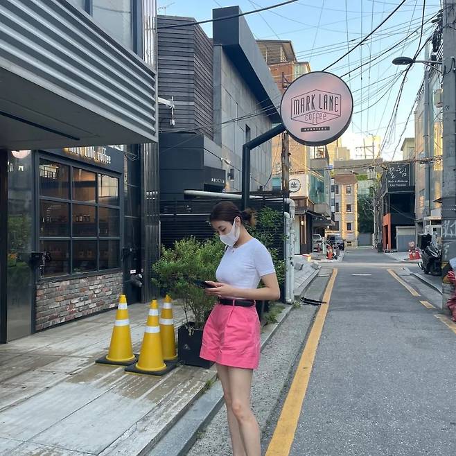 강소라는 도산공원 인근의 한 카페 앞에서 찍은 사진을 공개했다. 흰 티에 핑크색 반바지를 입은 그는 우월한 기럭지와 가느다란 팔다리를 자랑했다. 지난해 출산을 했다는 사실이 믿기지 않을 정도로 홀쭉한 모습이다.