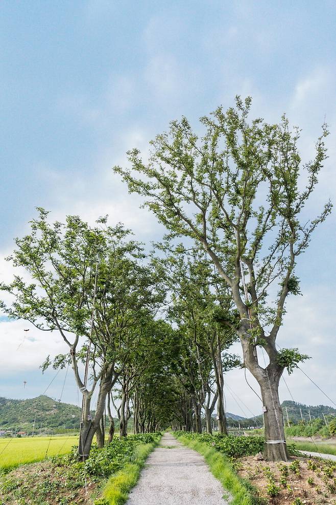 옛 선착장의 정취를 가지고 있으면서 간자미로도 유명한 화도선착장. 그곳에서부터 수국공원까지의 농수로 변에는 70~100년의 수령을 자랑하는 716그루의 팽나무들이 늘어서 있다. 팽나무 10리길 '환상의 정원'으로 불리는 곳이다. 이 팽나무들은 2010년 이후 전국 각지에서 기증받은 것이다. 폭 3m, 길이만 4km에 달하는 산책길에는 수국, 석죽패랭이, 수레국화 등이 함께 식재되어 있다.