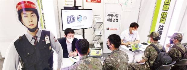 전역이 5개월가량 남았다는 육군 이모 상병(21)은 “군 생활을 하면서 틈틈이 구인 사이트에서 취업공고를 확인하고 자격증도 준비하고 있다”며 “부대 안에서 보안 관련 임무를 맡고 있어 보안업체에서 취업 상담을 받아봤다”고 했다. 한양공고 3학년 최진관 군(18)은 “아직 적성이나 진로를 제대로 찾지 못해 여러 부스를 둘러보는 중에 보안업체도 방문했다”며 “나이나 운전면허 제한 때문에 당장 입사하진 못하겠지만 실적에 따른 보너스, 건강검진, 자녀 학자금 등 사내 복지가 좋아 보여 관심을 갖고 취업 준비를 해보려 한다”고 말했다.