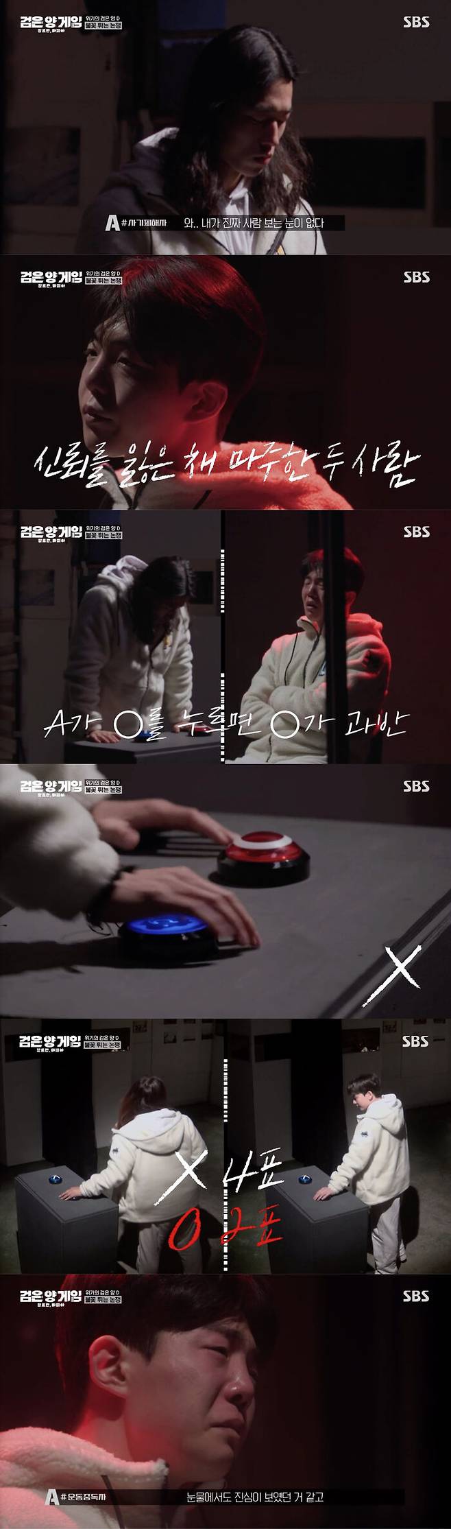 이때 B는 눈물을 흘리며 A에게 제발 믿어달라고 애원했고, 이에 고민하는 A는 B와의 의리를 지켜냈다.