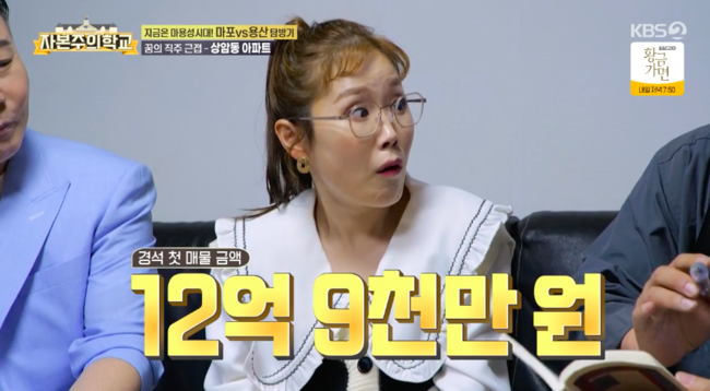 하지만 박슬기는 지난 주 방송에서 박종복이 소개한 용산 매물을 최종 선택했다. 그러면서 그는 “처음에는 마포구도 끌렸지만 계속 용산의 남산뷰가 생각이 난다”고 말했다. 이에 서경석은 “너무 명성만 쫓는 거 아니냐”며 핀잔을 줬고 “맞아요”라며 너스레를 떨었다.