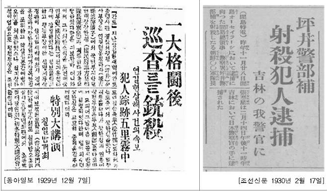 | ▲ 장한성의 쓰보이 사살 사건 관련 신문기사 |
