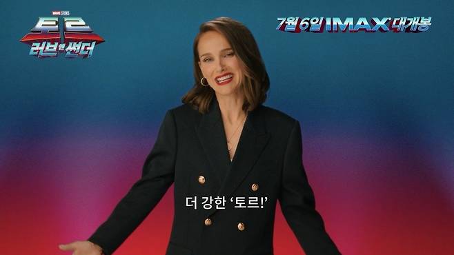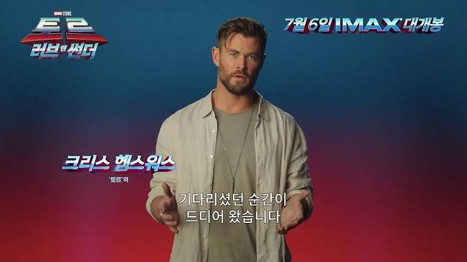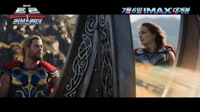이번에 공개된 영상엔 토르 역의 크리스 헴스워스와 마이티 토르 역의 나탈리 포트만이 관객들에게 직접 전하는 개봉 소식과 인사가 담겼다. 특히, 두 사람이 토르의 이름을 두고 신경전을 벌이는 듯한 유쾌한 티키타카를 통해 특별한 케미가 드러나 눈길을 끈다.