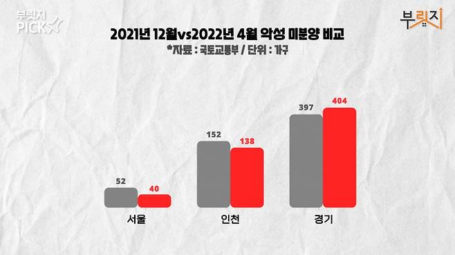 최신 통계를 보면 4월 말 기준 전국의 공사 완료 후 미분양 단지는 총 6978가구입니다. 전월(7061호) 대비 1.2%(83호) 감소했습니다. 준공 후 미분양 단지는 지난해 4월 9440가구에서 같은 해 12월 7449가구에서 올해 4월 말 6978가구로 점차 줄어드는 추세입니다. 지역별로 살펴보면요 지난해 말 대비 서울(52→40가구)과 인천(152→138가구)의 준공 후 미분양 단지는 줄었는데요. 반면 경기도는 397가구에서 404가구로 늘어난 게 눈에 띕니다. 수도권에서 주택 공급이 부족하다고들 하는데 경기도에서만 준공 후 미분양단지가 늘어난 이유는 뭘까요.