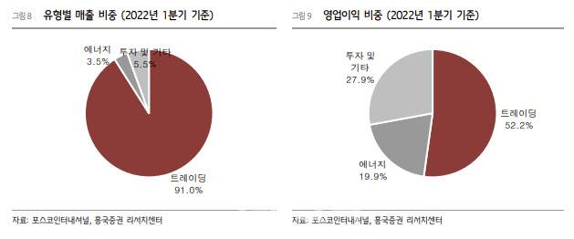 박종렬 흥국증권 연구원은 “트레이딩이 주도하고 있는 가운데 에너지와 투자 부문도 가세하면서 호실적 추세가 지속 중”이라며 “원자재가격 강세와 원화 약세에 따른 전 부문의 고른 실적 개선으로 2분기 및 하반기에도 양호한 실적 모멘텀은 지속될 전망”이라고 내다봤다.