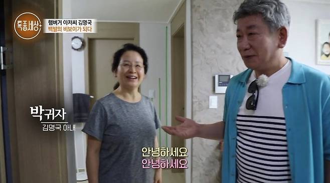 이날 김명국은 아내 박귀자 씨를 소개하며 "우리 집주인, 집사람, 애들 엄마"라고 말했다.