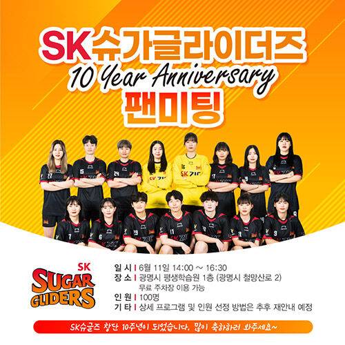 여자 실업핸드볼 SK 슈가글라이더즈가 내일(11일) 연고지인 경기도 광명시에서 팬 미팅을 개최합니다.