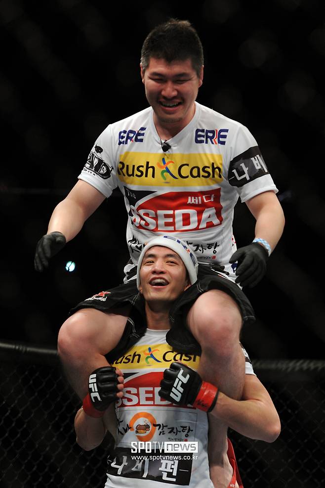 그때만 생각하면 아찔한 강경호는 9일 스포티비뉴스와 인터뷰에서 "시미즈가 (경기 못 뛰겠다고) 드러누웠으면 끝나는 것이었다. 고맙게도 계속 싸워 주더라"며 껄껄 웃었다.