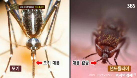 모기는 동물이나 사람의 피부에 침을 꽂아 피를 빨아 먹지만 샌드플라이는 흡혈방식이 다르다.