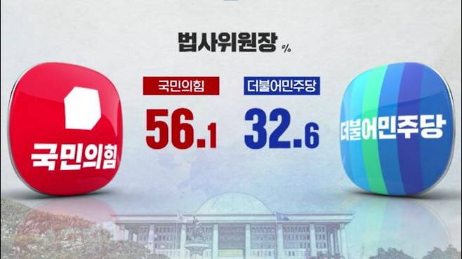 국회 원 구성 협상의 뜨거운 감자, 법제사법위원회 위원장을 어느 당이 맡는 것이 바람직한지에 대해서는, 지난해 7월 여야 합의대로 국민의힘에 법사위원장을 맡겨야 한다가 56.1%로 절반을 넘었고, 윤석열 정부 견제를 위해 민주당이 법사위원장을 맡아야 한다는 응답은 32.6%에 그쳤습니다.