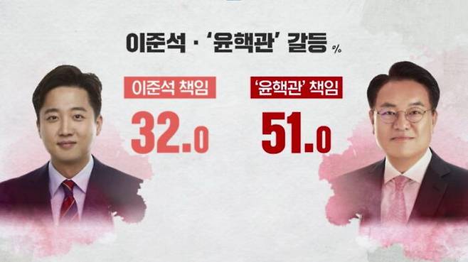 혁신위 출범을 놓고 갈등을 빚고 있는 국민의힘, 누구의 책임이 더 큰지를 놓고는 이준석 대표 32%, 이른바 '윤핵관' 중진 의원들 51%로 나타났습니다.