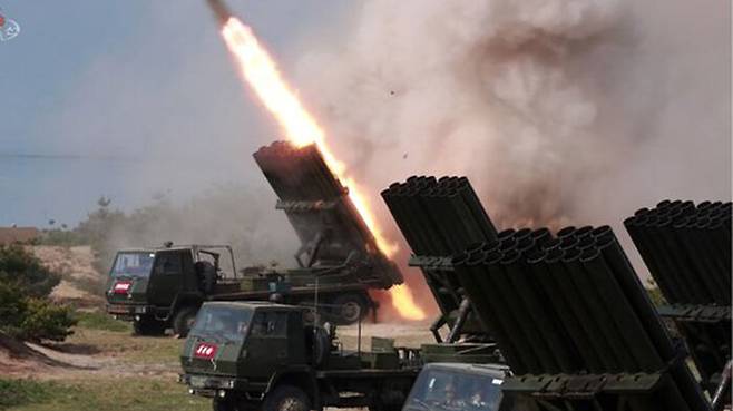 북한은 지난 4월 16일 전술유도무기 2발을 발사했습니다. 어제는 재래식 방사포 5발을 쐈습니다. 대륙간탄도미사일 ICBM을 무시로 발사하고 7차 핵실험도 하겠다는 북한이 막간에 짧은 발사체로 저강도 시위를 한 것입니다.