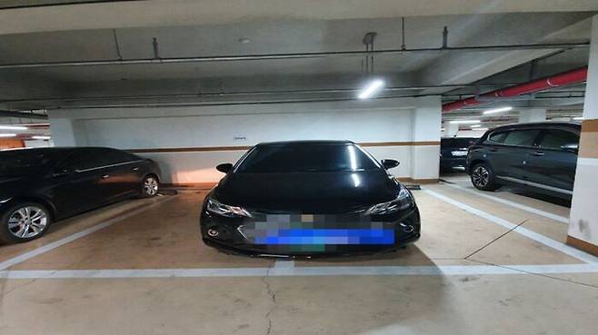 작성자 A 씨에 따르면 최근 그는 퇴근 후 차를 몰고 저녁 6시 30분쯤 아파트 지하주차장에 들어갔다가 두 칸에 걸쳐 주차된 검은색 차량을 발견했습니다.