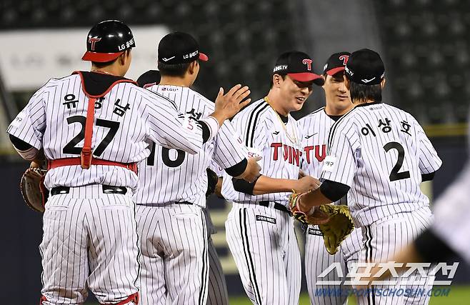 2022 KBO리그 LG 트윈스와 삼성 라이온즈의 경기가 14일 잠실구장에서 열렸다. 경기에서 승리한 LG 선수들이 기뻐하고 있다. 잠실=박재만 기자 pjm@sportschosun.com/2022.06.14/