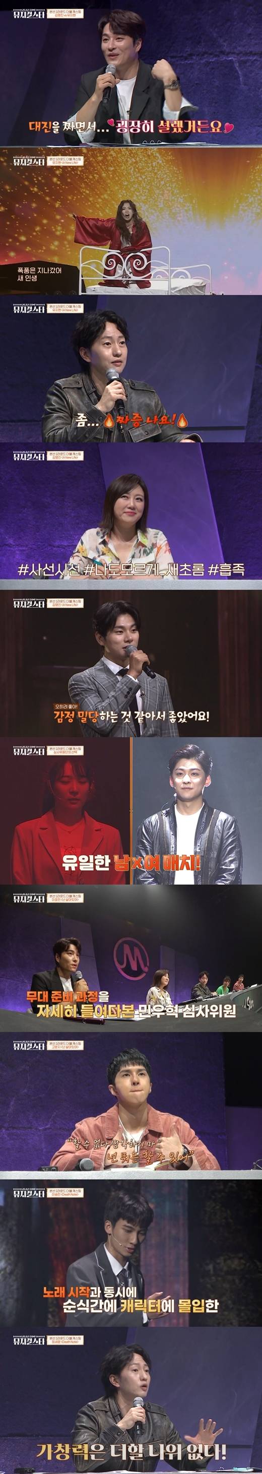 14일 방송된 '뮤지컬스타'에서는 ‘같은 배역 같은 넘버’로 1대1 대결을 펼치는 ‘더블캐스팅’ 미션이 이어졌다. 심사위원단이 짠 대진표대로 김명진과 유지현이 뮤지컬 ‘지킬 앤 하이드’의 넘버 ‘A New Life’로 무대에 올랐다.