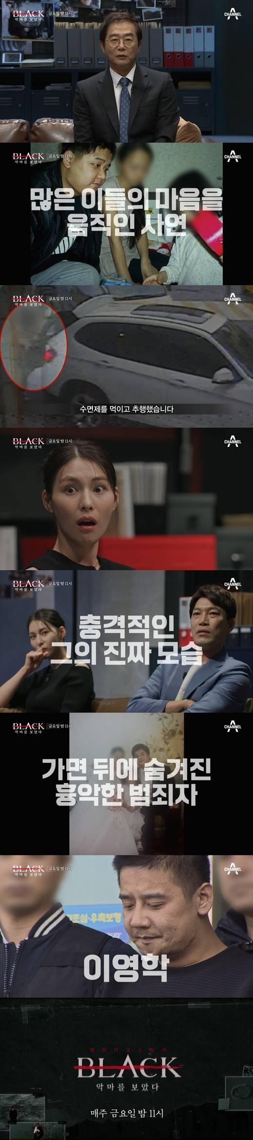 [마이데일리 = 이승길 기자] 채널A '블랙: 악마를 보았다'가 '천사 아빠' 가면을 쓰고 흉악한 범죄를 저지른 두 얼굴의 잔혹한 살인마 '어금니 아빠' 이영학의 행적을 바탕으로 그의 심리를 읽는다.