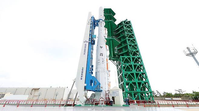 누리호는 오늘 아침 조립동을 나와 발사대로 이동했고, 이후 발사대에 세워져 발사 전 점검을 진행하고 있었습니다.