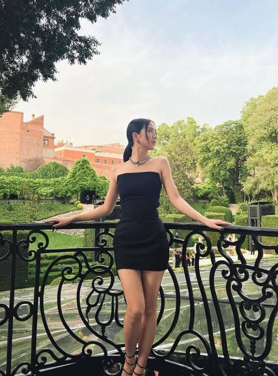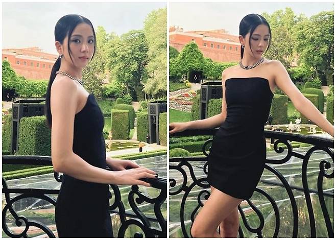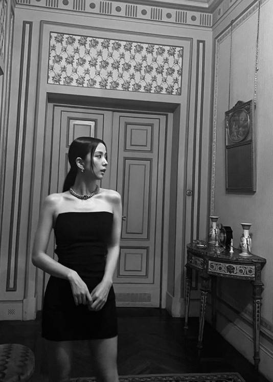 지수는 명품 브랜드의 쥬얼리를 착용하고 세련된 미모를 자랑했다. 어깨 라인이 드러나는 민소매 원피스를 입고 시크한 매력을 뽐냈다. 군살 없이 잘록한 허리가 살아있는 마네킹 자태를 뽐내 감탄을 자아냈다.