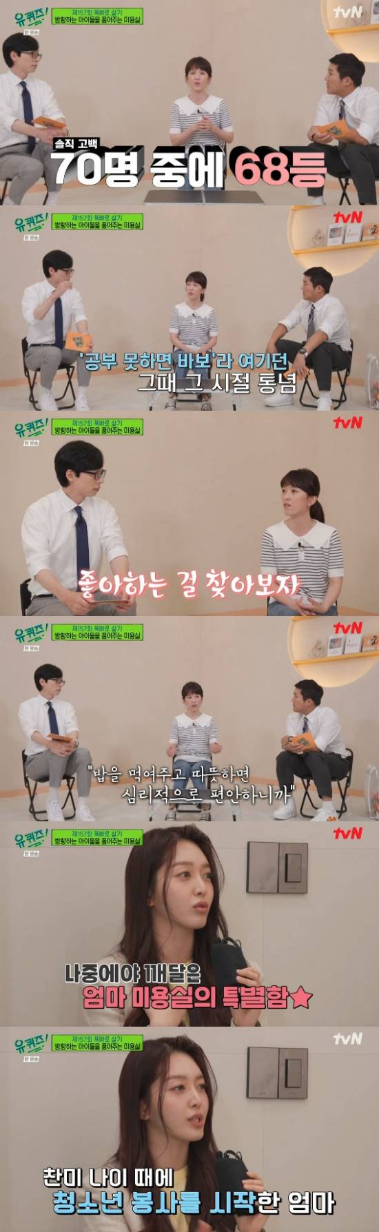 이어 유재석은 "10대 청소년들의 쉼터로 유명하다더라. 아이들이 미용실에 오면 머리만 잘라주는 게 아니라 밥도 차려주고"라며 귀띔했고, 임천숙 원장은 "밥은 셀프로 먹는다. 밥과 반찬은 해놓고 라면은 자기들이 끓여먹는다"라며 설명했다.