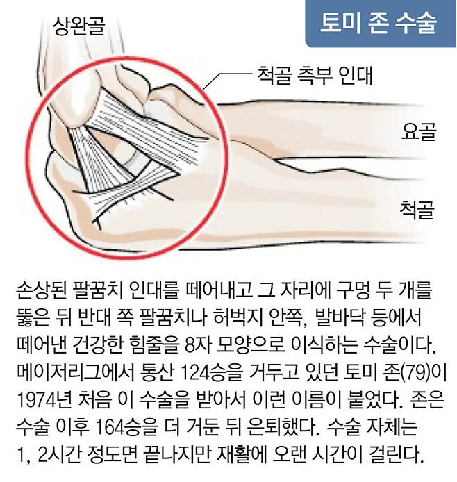 이번에는 사정이 조금 다르다. 부상이 노쇠화 결과에 가깝기 때문이다. MLB.com은 “염증이 생기거나 팔꿈치 인대가 파열되는 급성 부상은 아니다. 인대가 늘어난 후 시간이 흐르면서 진행된 만성 부상”이라고 설명했다. 반면 동산고 시절 토미 존 수술을 집도한 김진섭 박사는 “임창용(당시 36), 류택현(당시 39) 등 류현진보다 많은 나이에도 팔꿈치 수술을 받고 재기한 선수는 많다”고 희망을 이야기했다.