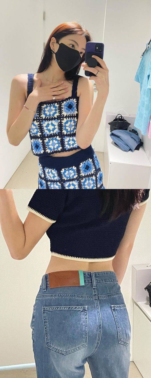 공개된 사진은 패턴이 들어간 투피스를 입은 강지영이 포즈를 취하고 있는 모습.