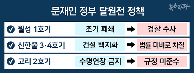 그러나 문재인 전 대통령이 공언했던 탈원전의 실체는 없었다. 신규원전 건설을 중단하고 노후 원전의 수명연장을 하지 않겠다는 약속은 지켜지지 않았다. 그나마 월성1호기가 조기에 폐쇄됐지만 '탈원전의 명분도, 실리도 모두 잃은 실패'라는 평가가 나온다.