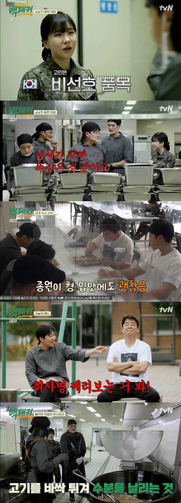 16일 방송된 tvN 예능 프로그램 '백패커' 4화에서는 군 부대로 출장을 떠난 백종원, 딘딘, 안보현, 오대환의 모습이 그려졌다.