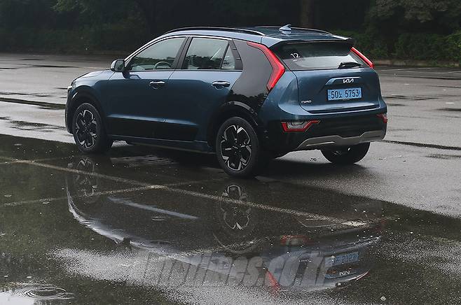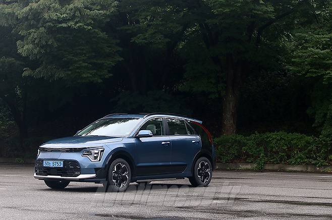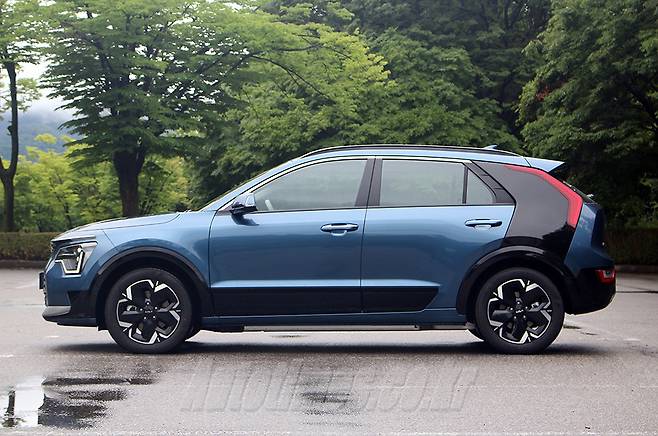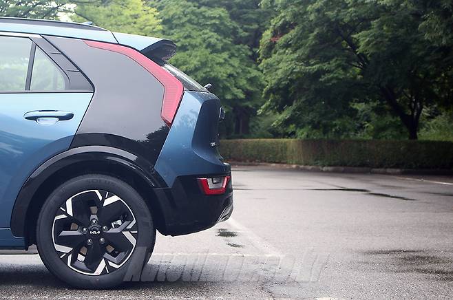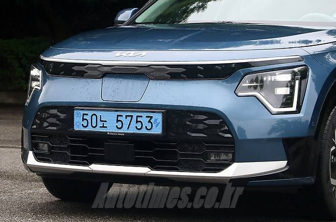 신형 니로는 상품성에 비해 디자인이 아쉽다는 전작과 달리 하이테크 감성을 앞세워 세련된 조형미를 품고 있다. 기아 디자인 정체성인 호랑이 얼굴의 전면부는 기하학적 요소로 가득한 데도 강인한 이미지가 남아있다. 심장 박동 그래프를 모사한 헤드램프의 주간주행등과 그릴 장식을 채운 다각형 패턴은 미래적인 분위기를 효과적으로 낸다. 그릴은 내부를 반듯한 직선들로 구성했던 하이브리드와 차별화 된 요소이기도 하다. 충전구는 전면부 중앙에 위치한다. 나름대로 깔끔하게 배치한 것처럼 보이지만 후면 주차를 선호하는 운전자 입장에서는 번거로울 수도 있다.