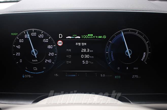 주행모드는 에코, 일반, 스포츠 세 가지를 제공한다. 각 모드별 가속페달 무게는 확연히 다르다. 회생 제동은 패들 쉬프트 레버를 통해 강도를 조절할 수 있다. 가장 강하게 할 경우 브레이크 페달 조작 없이도 차를 멈출 수 있는 원 페달 기능을 쓸 수 있다. 이밖에 회생제동은 내리막길에서 속도를 유지할 때, 전방 교통 흐름, 운전자 감속 패턴에 따라 강약을 자동 조절하는 스마트 회생제동 시스템 2.0을 지원한다.