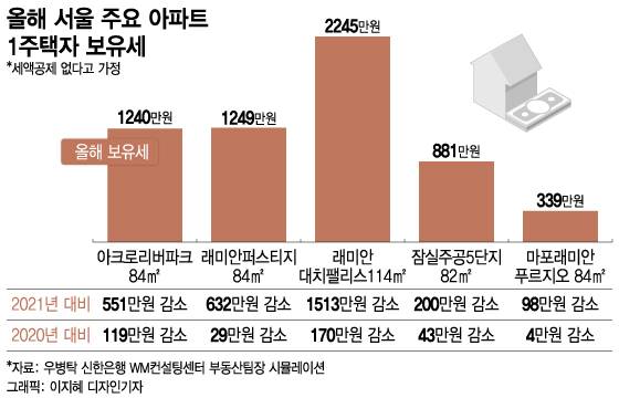 ◇"보유세 부담 확 줄었다"..아리팍 84㎡ 551만원↓·반래퍼 84㎡ 632만원↓·래대팰 114㎡ 1513만원↓·마래푸 84㎡ 98만원↓