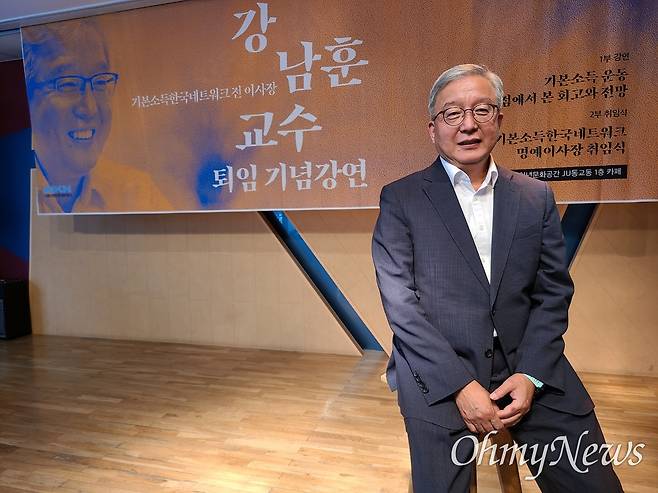 이재명 더불어민주당 의원의 '기본소득 스승', '경제 멘토'로 불리는 강남훈 교수는 국내 기본소득 연구의 선구자다. 지난 대선 당시 이 후보 직속 기본사회위원회 위원장을 맡아 기본소득 공약의 설계도를 그렸다.