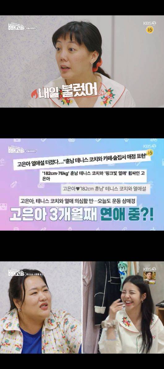 18일 방영된 KBS2TV 예능 '빼고파'에서는 고은아에게 테니스 코치와의 열애설에 관심을 갖는 언니들의 모습이 그려졌다.