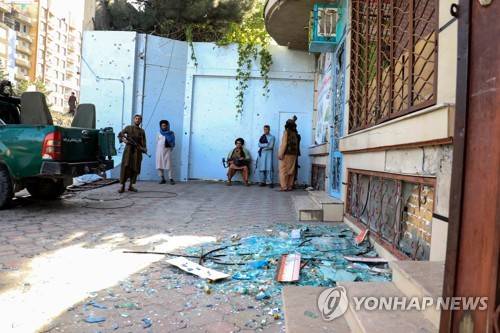 epa10020353 Armed Taliban stand guard at the site of an explosion in front of a Sikh temple, in Kabul, Afghanistan, 18 June 2022. Suicide attackers stormed a Sikh temple in the Afghan capital on 18 June morning, sparking a gun battle in which two people lost their lives, police said. 'The attack on the (Sikh) shrine ended with the elimination of the insurgents', Kabul police spokesperson Khalid Zadran said. EPA/STRINGER