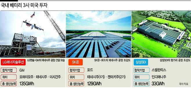 LG에너지솔루션, SK온, 삼성SDI 등 국내 배터리 3사의 미국 투자 윤곽이 드러나고 있다.