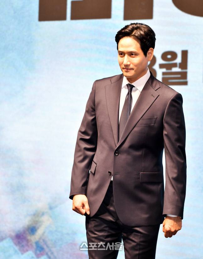 배우 박해준이 20일 웨스틴조선 호텔에서 열린 영화 ‘비상선언’ 제작보고회에 무대에 올라 포토타임을 갖고 있다.