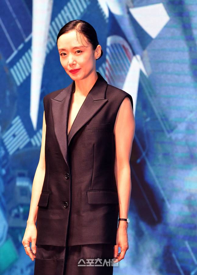 배우 전도연이 20일 웨스틴조선 호텔에서 열린 영화 ‘비상선언’ 제작보고회에 무대에 올라 포토타임을 갖고 있다.