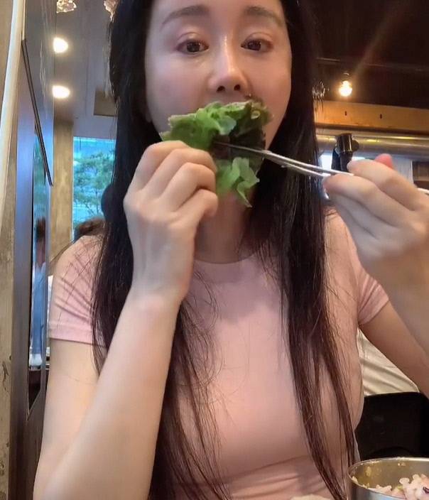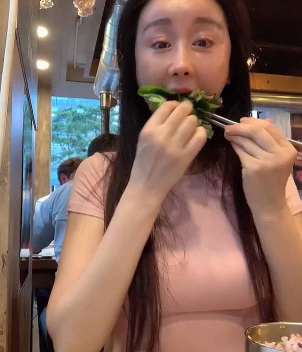 공개된 영상 속 함소원은 상추와 고기를 독특하게 한입에 넣은 후 웃음을 터트리고 있다.