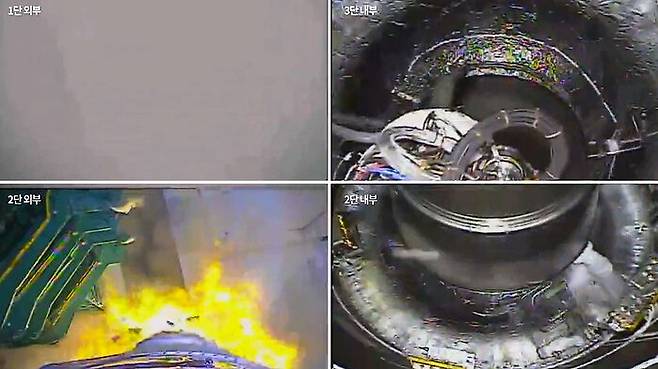 누리호가 포착한 영상은 1단과 2단 내외부 카메라가 각각 촬영한 4개의 장면들입니다.