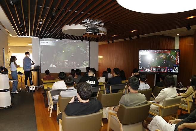 서울 서초구 본사 2층에 위치한 복합문화공간 가산천년정원에서 진행된 이번 클래스는 '리그오브레전드(LoL·롤)를 즐기는 방법'을 주제로 LoL 게임에 관심이 있는 직원들을 대상으로 진행됐다. LoL은 5명으로 이뤄진 2개 팀이 서로의 구조물을 파괴하기 위해 겨루는 온라인게임으로, 월간 이용자가 1억명을 넘을 만큼 국내는 물론 전 세계적으로 인기 있는 PC 게임이다.