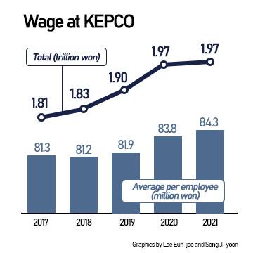 KEPCO came under fire for handing out generous bonuses to employees despite logging 5.86 trillion won ($4.5 billion) in losses last year. Wage rose annually over the past five years.