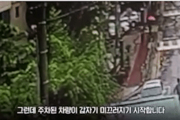 그런데 정차돼있던 A 씨의 차량 사이드 브레이크가 풀리면서, 차량은 빠르게 뒤로 미끄러지기 시작했습니다.