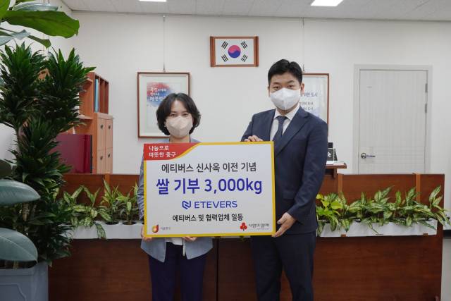 대한민국 대표 종합 IT 솔루션 전문 기업 에티버스가 어려운 이웃을 위해 사랑의 쌀 3000kg을 서울 중구청에 기부했다고 22일 밝혔다.
