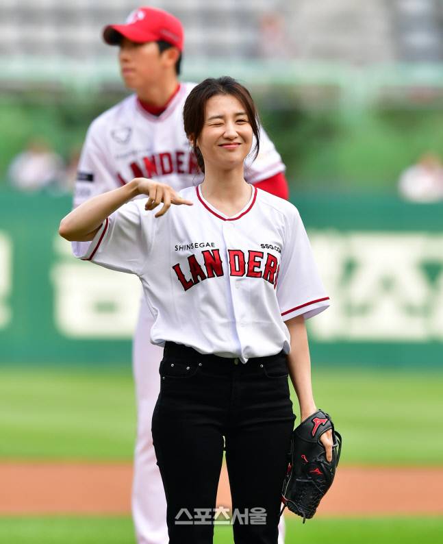 배우 박하선이 22일 인천SSG랜더스필드에서 열린 2022프로야구 SSG랜더스와 두산베어스의 경기에서 시구를 하고 있다. 2022.6.22.