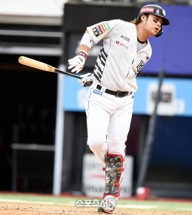 KT 박병호가 22일 수원 KT위즈파크에서 열린 KBO리그 NC와 경기 1회말 헛스윙을 하고 있다.