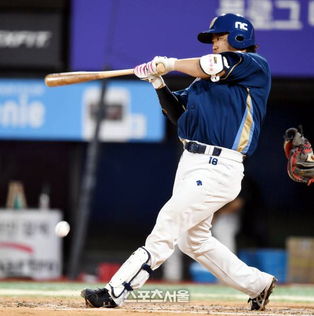 NC 박석민이 22일 수원 KT위즈파크에서 열린 KBO리그 KT와 경기 6회초 2사2루 내야땅볼을 치고 있다.